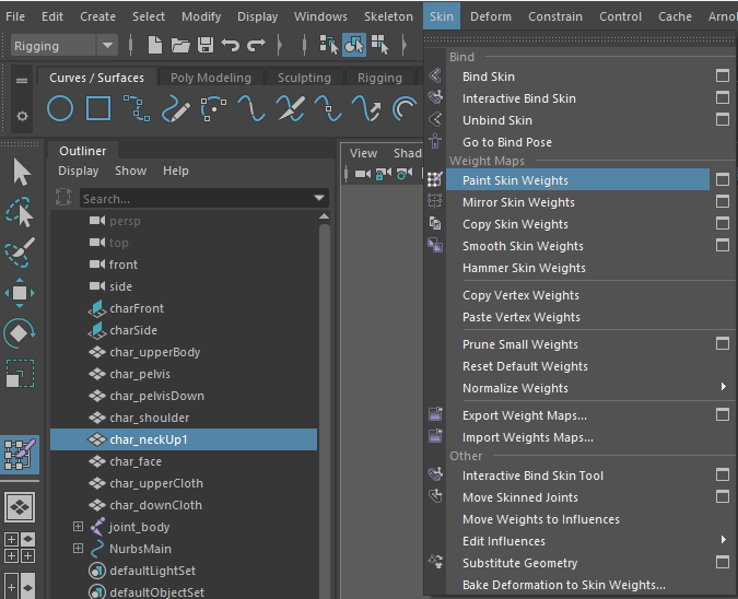 joint 움직임의 영향을 어느정도 받을지 직접 페인팅하는 것.