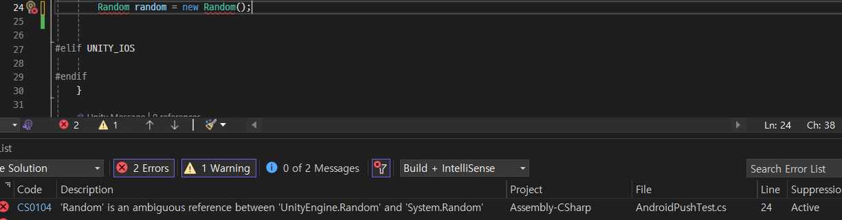 + 유니티에서 System.Random을 사용한다면 이런 오류가 뜬다. 해당 Random이 System인지 UnityEngine인지 판단할 수 없다는 뜻이다.